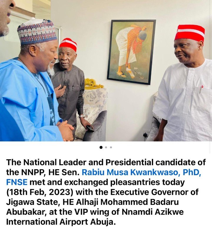 “We wish to draw the attention of the general public to a photograph currently circulating on social media platforms, which falsely suggests that the Former Minister of Defence, His Excellency Mohammed Badaru Abubakar, CON, mni, held a  meeting with the National Leader of the New Nigeria Peoples Party (NNPP) and 2023 Presidential Candidate, His Excellency Senator Rabiu Musa Kwankwaso, at the VIP Wing of Nnamdi Azikiwe International Airport, Abuja,”