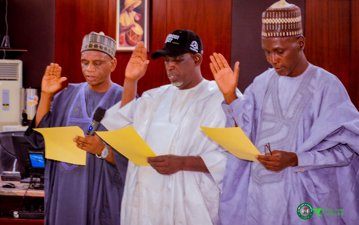 Those sworn in are Alhaji Kabiru Hassan Sugungum, Special Adviser on National Assembly Matters; Ibrahim Ahmad Kwaimawa, Special Adviser on Industrial Relations; and Ado Sani Birnin Kudu, Special Adviser on Civil Service Matters.